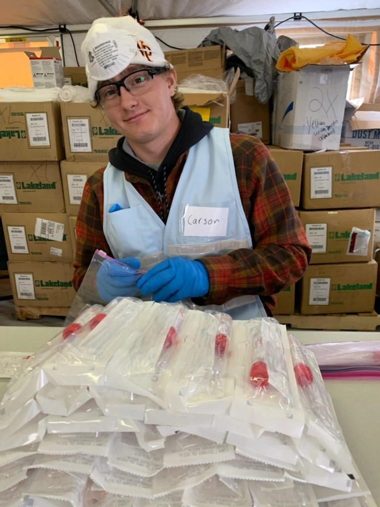 Carson not only volunteers to help with the COVID-19 Pandemic, but he is one of the best at what he does. For someone who came into this knowing nothing, he sure is leaving knowing a whole lot. The time Carson has spent at this Testing Center has only been beneficial to him. Clocking in at 7:30 am and clocking out at 4:30 pm is a full day’s work for someone who should be watching Netflix all day.